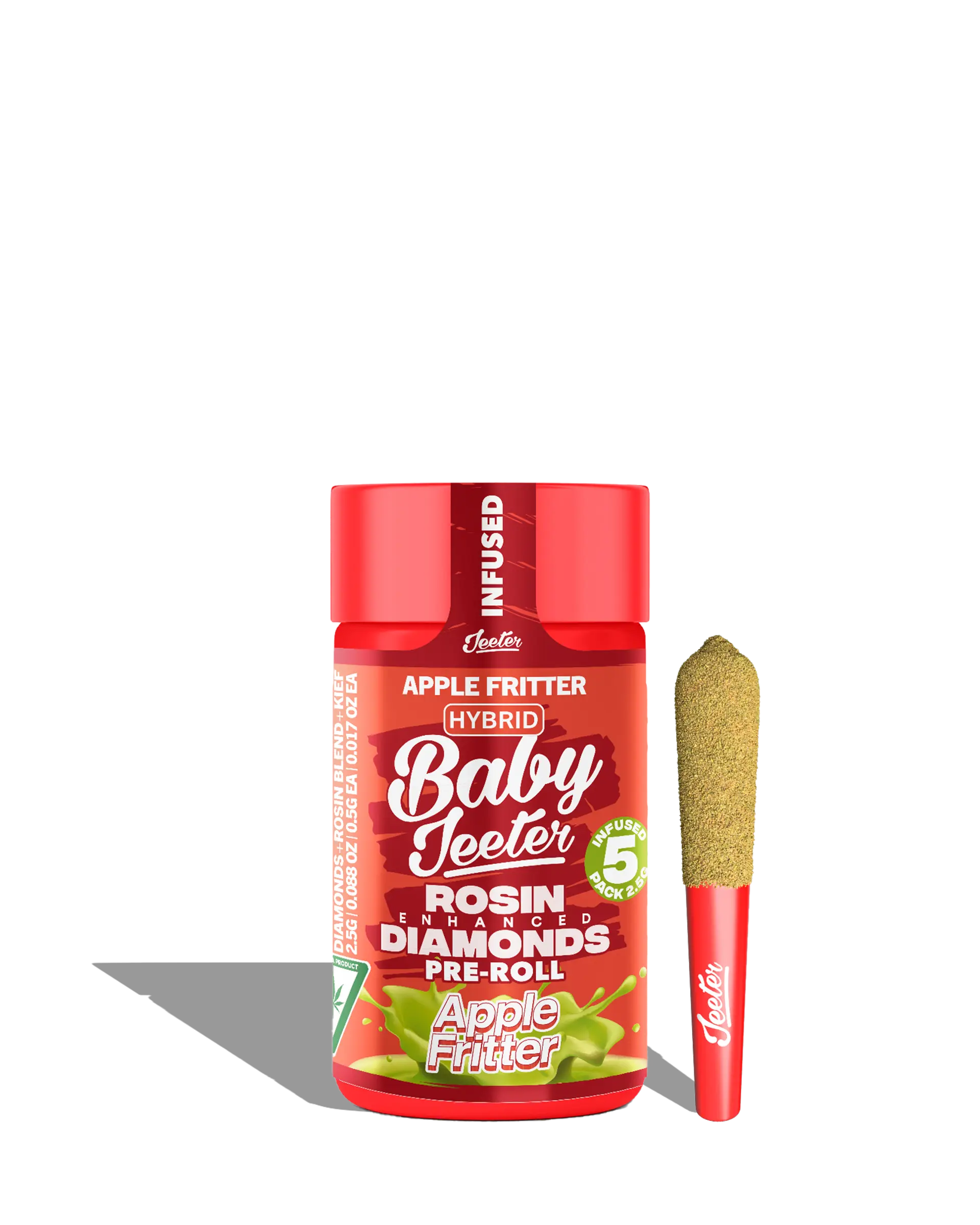 Live Rosin Enhanced Baby Jeeter Apple Fritter Infused Preroll 5-pack