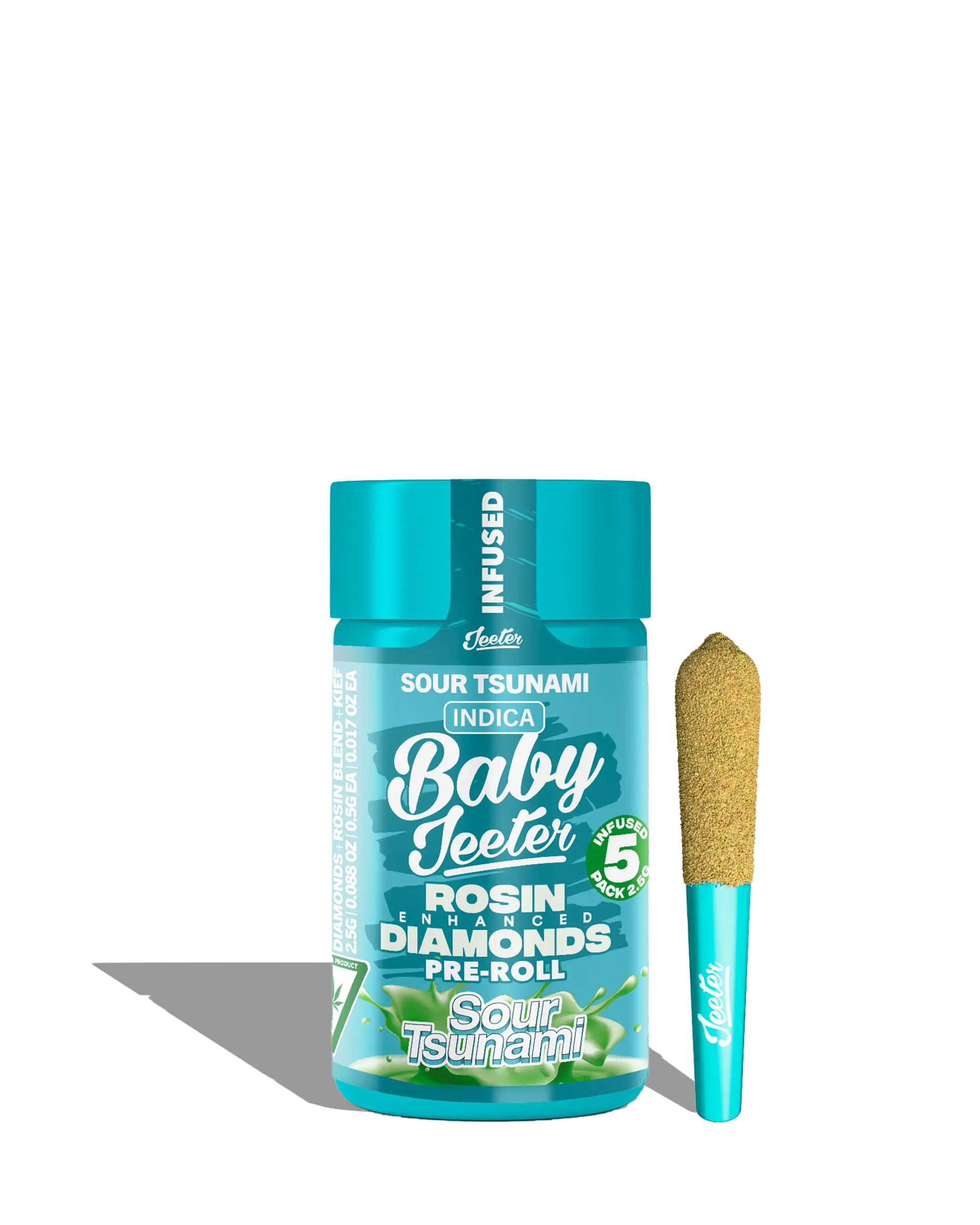 Live Rosin Enhanced Baby Jeeter Sour Tsunami Infused Preroll 5-pack