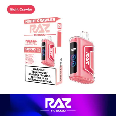Check out the RAZ TN9000 Disposable, featuring a 650mAh battery, a 0.96″ HD display with animations, airflow control, and 12mL e-liquid capacity.